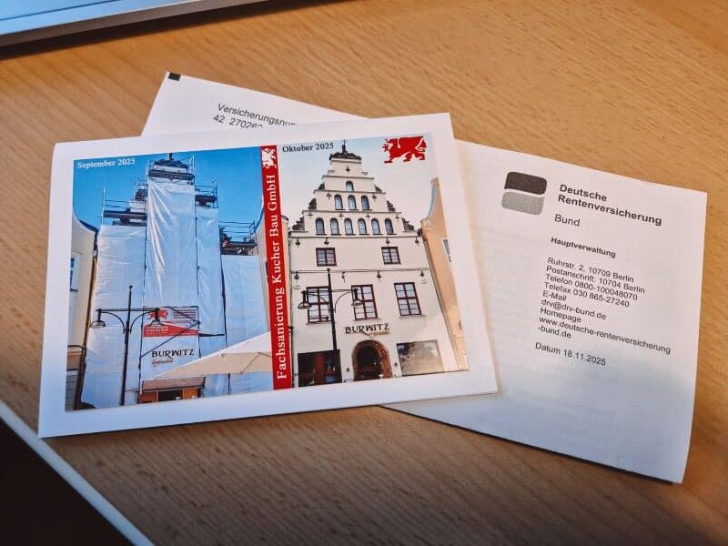 Die alljährliche Renteninformation ist da, außerdem schreibt die Baufirma Kucher Bau, die in unserem Mehrfamilienhaus vor einigen Jahren den Keller saniert hat. Immer sehr originell, die Weihnachtskarte.